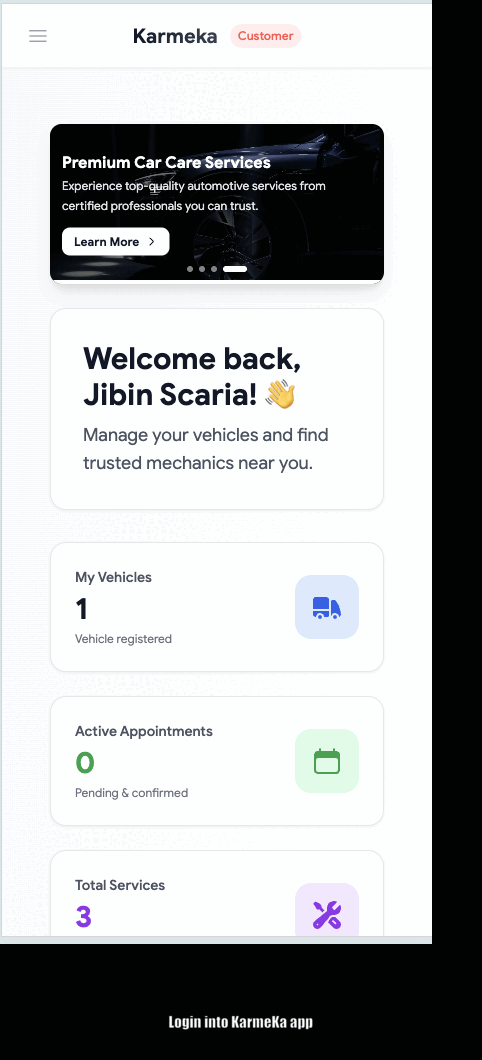 You shouldn't have to chase mechanics, second-guess prices, or miss important services. With KarmeKa, you can find trusted professionals near you, compare real-time quotes, and stay on top of every service — all from one easy-to-use platform.